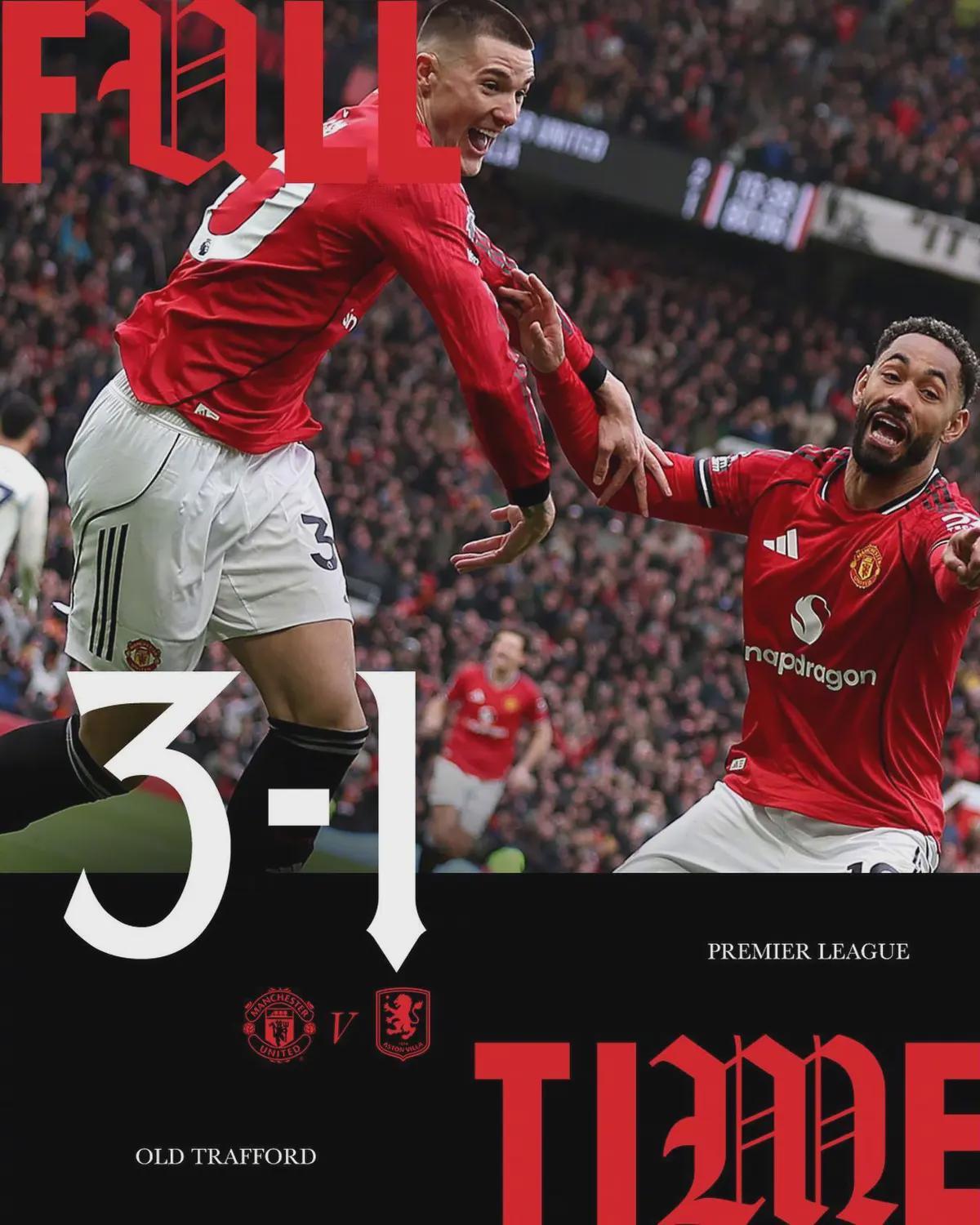 3-1,曼联在争四的六分大战中生吞活剥了阿斯顿维拉。但这场胜利的意义,远不止于积分榜上反超对手3分、稳居第三的舒适区。这是一个属于纪录的夜晚,更是一个关于传承、打脸与救赎的剧本。
